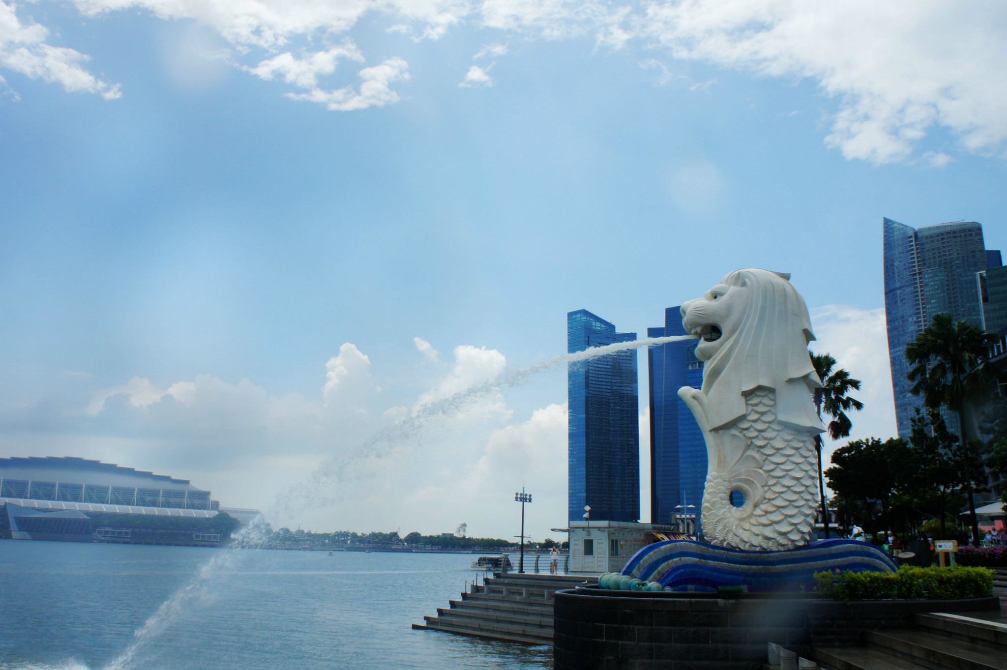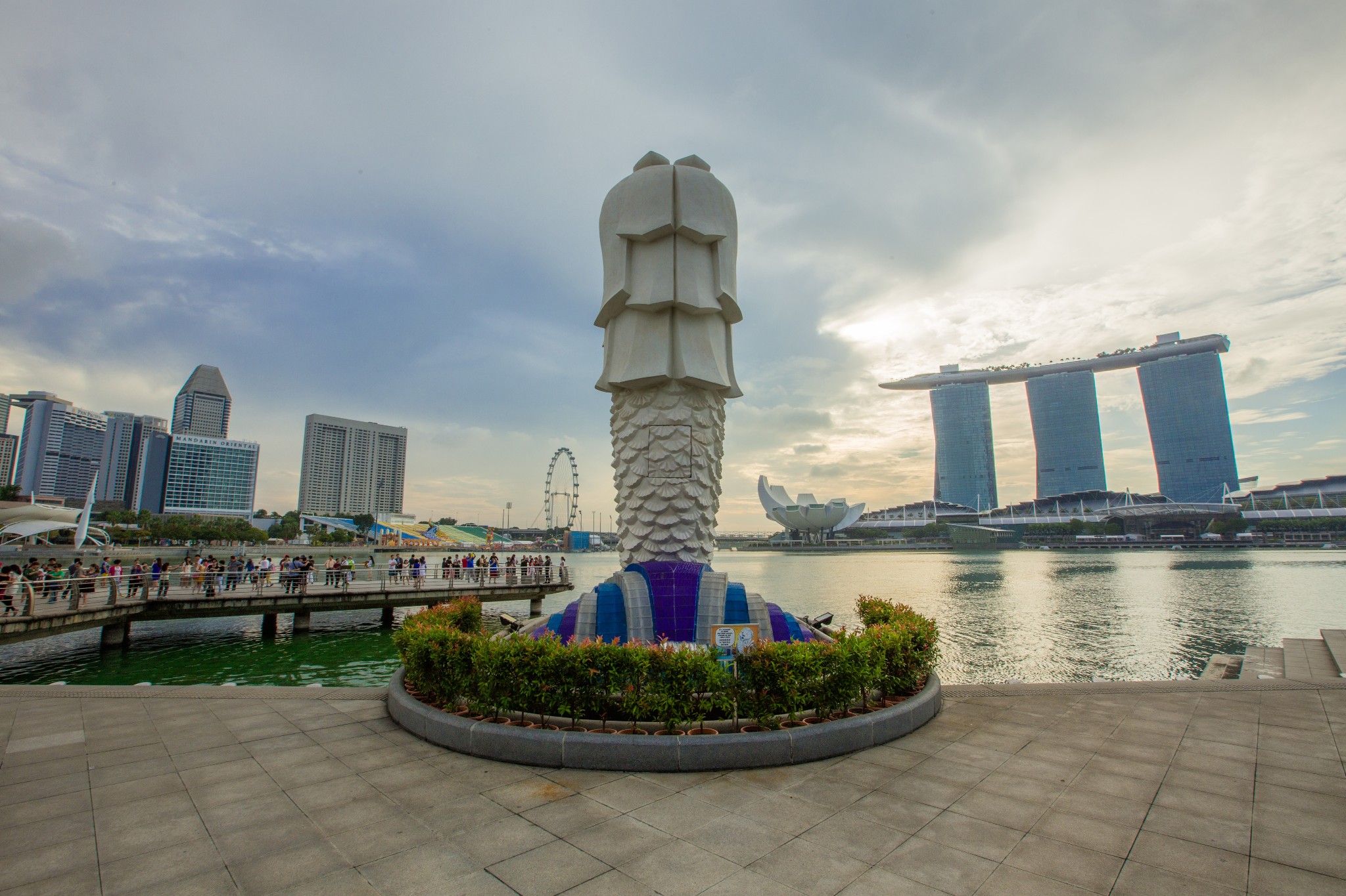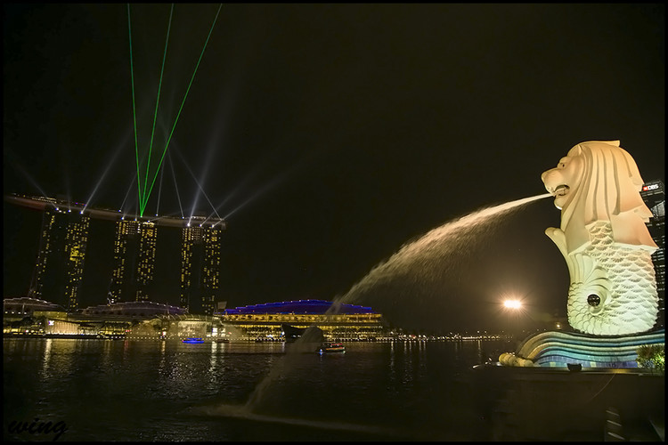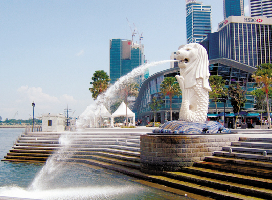 鱼尾狮像坐落于市内新加坡河畔鱼尾狮公园内,是新加坡的标志和象征。塑像由雕刻家林南先生和他的两个孩子共同雕塑完成,每年来自全球一百多万的游客都会专程造访鱼尾狮公园,与世界著名的鱼尾狮拍照留念。高8米的狮子口中喷出一股清水,汇入新加坡河中。公园周围还聚集了很多新加坡著名的地标性建筑,如滨海艺术中心、政府大厦、高等法院、维多利亚剧院、莱佛士铜像等,是徒步游览的不二之选。
